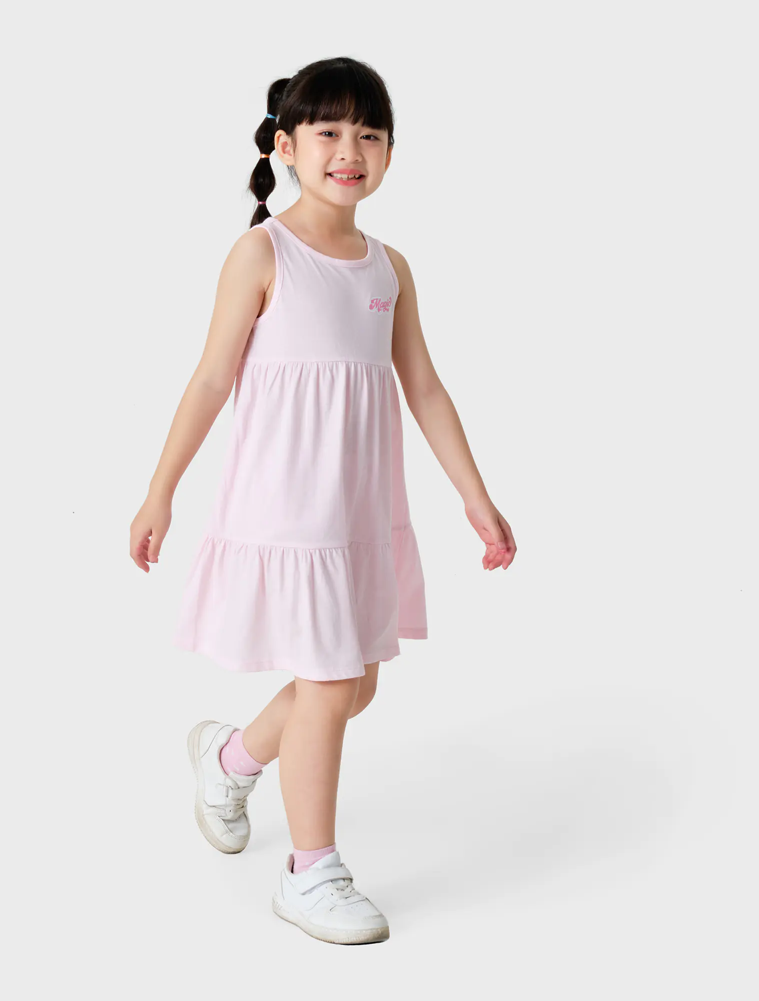 Váy liền bé gái cổ tròn sát nách có hình in